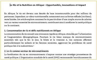 Rice and Nutrition: A Challenge for Africa
