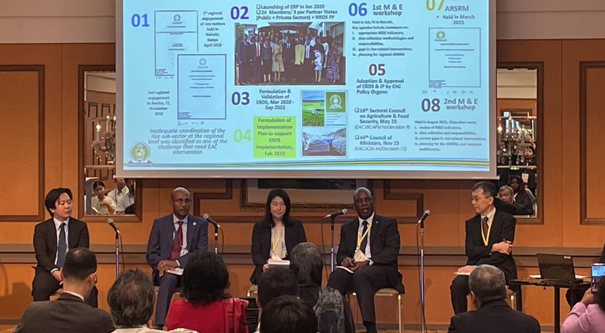 La neuvième Conférence internationale de Tokyo sur le développement de l’Afrique (TICAD 9) s’est tenue du 20 au 22 août 2025 à Yokohama, au Japon. M. Shinjiro Amameishi, coordinateur général du secrétariat de la CARD, a présenté la phase 2 de la CARD lors d’un événement parallèle organisé par la JICA. M. Fahari Marwa, économiste agricole principal à la Communauté de l’Afrique de l’Est (CAE), a également rendu compte du développement du riz au niveau sous-régional lors de cet événement. Pour la TICAD 9, l’AGRA a envoyé une délégation dirigée par sa présidente Alice Ruhweza, qui a tenu une série de réunions avec des agences gouvernementales japonaises et le secteur privé, et a fait des présentations lors de plusieurs événements.